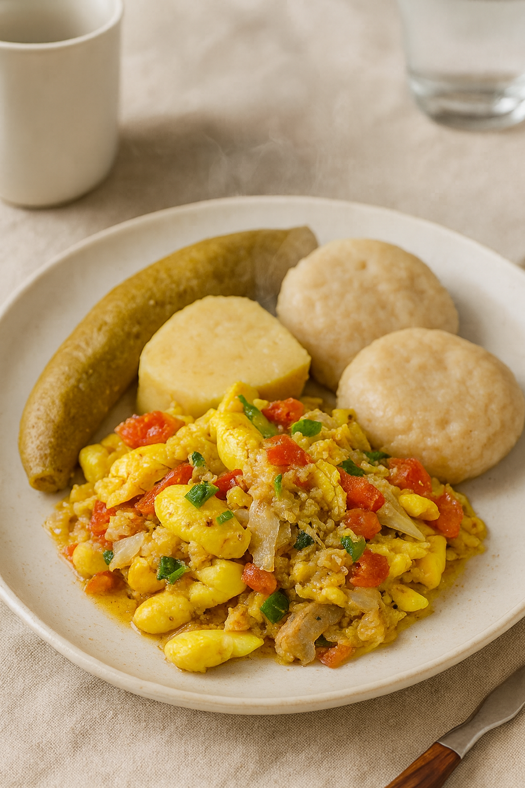 Jamaica’s Beloved National Dish — Savory, Creamy, and Irresistible Servings: 4 Prep Time: 15 minutes (plus soaking saltfish) Cook